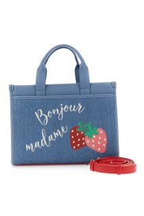 Canvas and nappa-effect tote bag with a front pocket. the structured design is enhanced by a front print with lettering and a graphic motif adding a playful and distinctive touch. featuring a removable shoulder strap and a contrasting zip it's practical roomy and ideal for everyday use. dimensions: 28.5 cm (length) × 20.5 cm (height) × 13.5 cm (depth)
