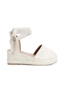 Canvas sandals with slave lacing 10.5 cm rope wedge and 3.5 cm platform. leather insole.