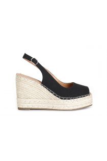 Canvas peep-toe sandals. leather insole. 10.5 cm rope wedge and 3.5 cm platform. adjustable strap. leather insole.
