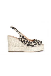 Canvas peep-toe sandals. leather insole. 10.5 cm rope wedge and 3.5 cm platform. adjustable strap. leather insole.