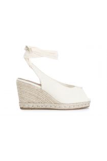 Cord wedge and platform sandals with canvas gladiator lace-up.