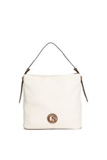 Shoulder bag in canvas effect fabric with central logo and contrasting details. finished with enamelled rivets and an adjustable shoulder strap with cufflinks for a chic look.