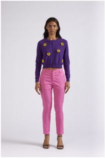 cardigan with crocheted flowers purple