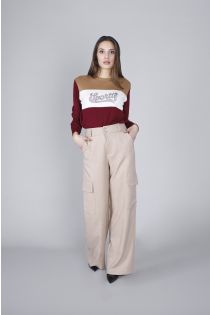 Wide-leg cargo trousers with side pockets, ideal for a casual yet sophisticated look. Crafted from flowing fabric, they ensure comfort and a regular fit. The model is 172 cm tall and wears a size S.