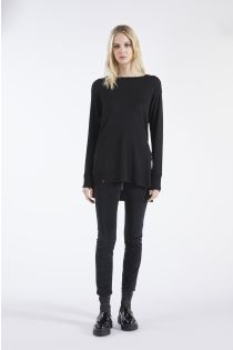 Boat neck sweater in cashmere blend yarn with contrasting lurex details and a longer back