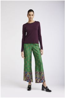 Cashmere-blend crew-neck sweater with long sleeves. delicate openwork pattern on the front that also reproduces our logo.