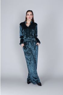 Palazzo trousers with an elastic waistband made of soft hammered chenille. Regular fit, perfect for casual-chic and comfortable looks. The model is 172 cm tall and wears a size S.