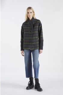 Chequered coat in a warm wool blend fabric with knitted cuffs and collar