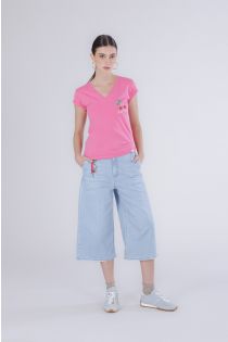 cherry print v-neck t-shirt bubble gum