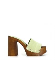 clogs with high heel and split leather strap green grass