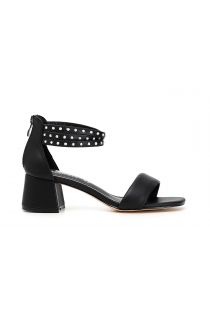 Closed back sandals with anklet accessory in rhinestones on medium heels.