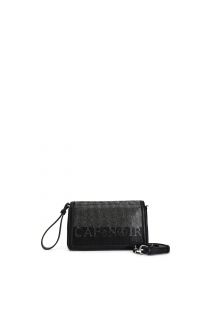 Clutch bag with flap. cafènoir logo in two-colour rhinestones. the back is mirror effect. handle and shoulder strap.