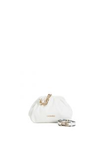 Clutch bag with matching chain with snap fastener and optional shoulder strap.