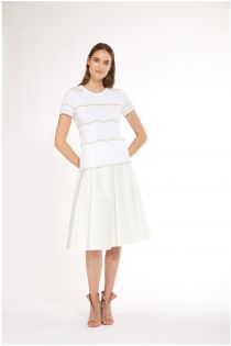 A timeless and delicate half-circle skirt made of cotton fabric with belt. Available in a wide palette range of solid colours.