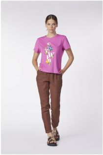 cotton jersey t-shirt with floral print and embroidery cyclamen