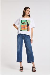 Cotton jersey t-shirt with front print depicting a jewel bag