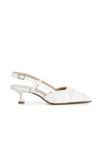 court shoes with lace at the back with woven leather upper off white