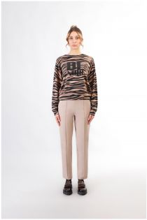 Printed crew-neck sweater made of warm and soft wool blend yarn. our slogan "be noir" is enriched with rhinestones. available in two color variants. garment of great comfort and versatility. passepartout model for every type of need.