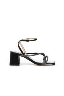 Micro-rhinestone-clad criss-cross sandals with ankle strap. heel h. 65mm.
