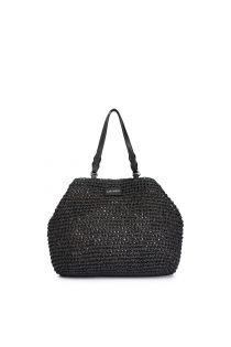 Handmade crochet shoulder tote magnetic closure and loop with lobster clasp on the hips tag with embossed logo and gold foil.
