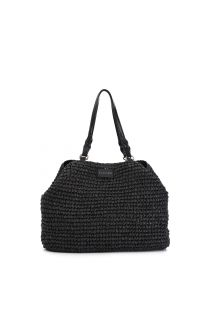 Crocheted tote. handmade. coloured heart charm with raffia border. super capacious can be worn two ways (internal drawstring). magnetic clasp.