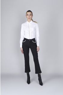 Cropped, flare-fit jeans in superstretch denim with rhinestone-embellished pocket trim. A casual, bright design that enhances the figure with comfort and style. The model is 173 cm tall and wears a size S.