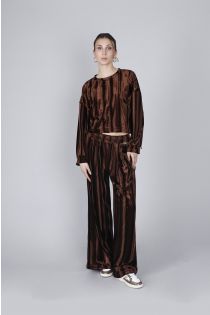 Cropped sweatshirt in shaded velvet with a boat neck and adjustable drawstring hem. Perfect for casual and comfortable looks. Regular fit. The model is 173 cm tall and wears a size S.