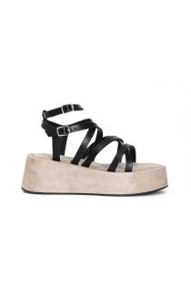 Crossed multi-strap leather sandals. lining and insole are in leather. 5.7 cm high banded wedge.