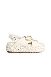 Crossed sandals with golden clamp. comfortable fussbett and braid-covered bottom. the wedge is 6 cm high. shoe with a comfortable fit comfortable even after several hours of use.