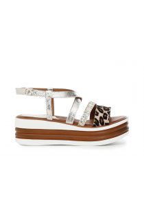 Crossover sandals in glitter and pony hair on two-colour wedge