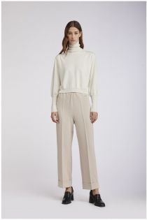 Culotte fit trousers with fixed lapels made with warm wool fabric.