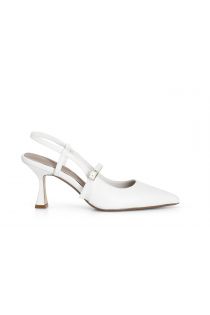 Décolleté with strap and lace at the back. the insole is in leather. shoe with a slim shape. the heel is 7 cm.