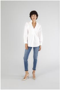 Long-sleeved shirt in stretch poplin with a comfort fit and a "v" neckline. its soft line transmits multiple functions and adapts well to different occasions of use.