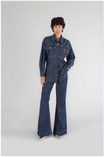 Field jacket in loose denim canvas. removable brooch and long sleeves. perfect garment for those who feel independent and fashionable and who love to experiment and always be chic and original.