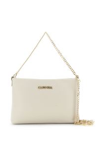 dollar leather clutch bag, shoulder strap and handle with chain and snap hooks cream