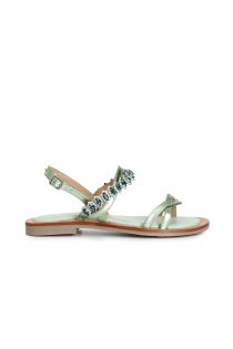 Sandals with double band in laminated leather with rhinestone accessories. the lining and insole are in leather. the heel is high h. 1.5 cm. comfortable shoe even after several hours of use and perfect to combine with multiple looks.