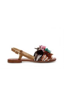 Double bow sandals in multicolour raffia and rhinestones, hand-stitched raffia sole.