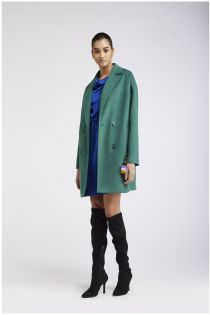 Basic double-breasted coat made with poly-viscose cloth.