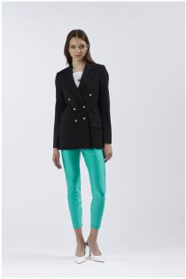 Elegant double-breasted jacket in stretch fabric. classic lapels and gold button fastening. welt pockets with flaps. perfect garment for the office or an evening outfit.