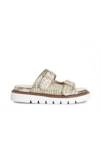 double buckle slipper with weaving light gold