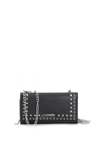 Suede effect shoulder bag with large lettering on the adjustable shoulder strap c
