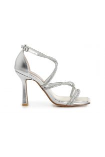 Sandals closed at the back and double criss-crossed with rhinestones. heel h. 105mm