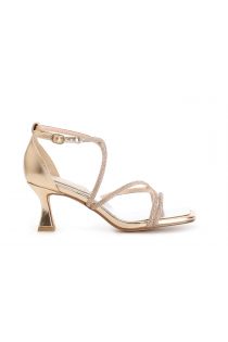 Sandals closed at the back and double criss-crossed with rhinestones. heel h. 70mm