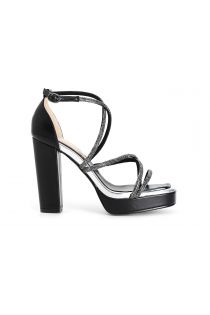 Sandals with rhinestone closed at the back ankle strap and platform. heel h. 115mm
