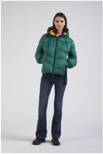 down coat with inner "be noir" print dark green