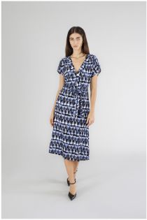 Dress with dropped shoulder and crossed neckline made of printed viscose marocaine. dress to wear on any daily occasion.