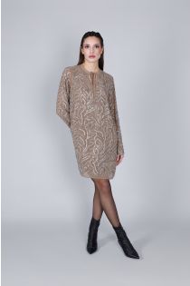 Elegant flared dress in embroidered georgette with rhinestones, long sleeves and an above-the-knee length. Perfect for ceremonies and special occasions. The model is 172 cm tall and is wearing a size S. Dress fit: regular.
