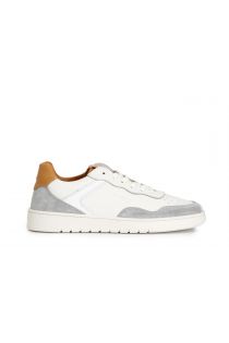 Casual multicoloured lace-up shoe made of leather and suede sole stitched to the upper.