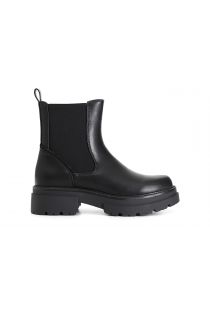 Women's leatherette ankle boot with side stretch panel on the leg enriched with a profile made of rhinestones. the insole is leather.