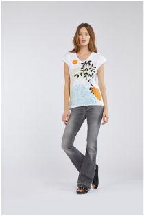 Elasticated cotton jersey T-shirt with a print and embroidery mix that decorates the front with an ethnic chic style